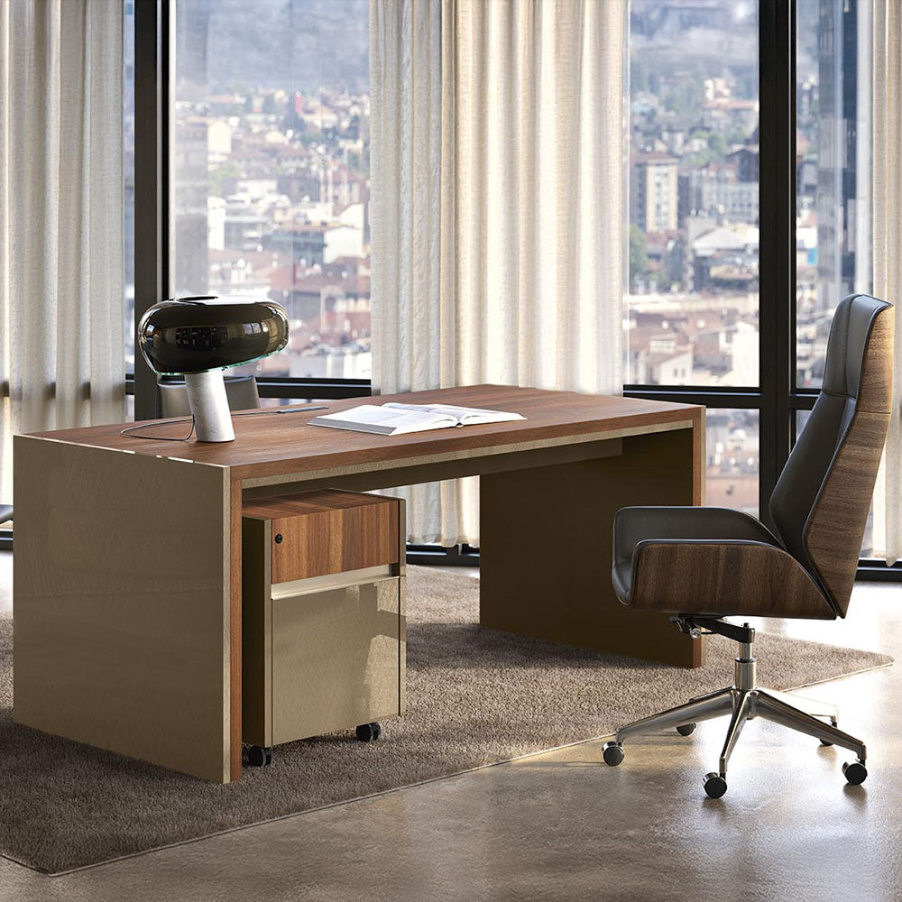 The Oceanum collection is known for its effective, sophisticated, and boldly decorative aesthetics. Premium materials are combined to create elegant colors. The brilliant, shiny surfaces are covered with cobalt-stained natural eucalyptus wood veneers.